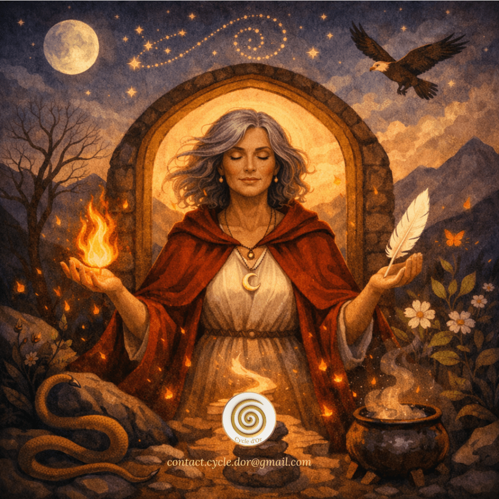 Dans de nombreuses traditions anciennes, la femme ménopausée accédait au statut de « Femme Sage » ou de « Crone ». Elle n’était plus soumise aux cycles de la lune (les règles) car elle avait intégré la lune en elle. Elle devenait détentrice de la sagesse.